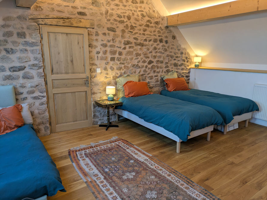 Une chambre comprend 2 lits simples (pouvant faire un lit double) et 1 canapé lit simple (3 personnes).